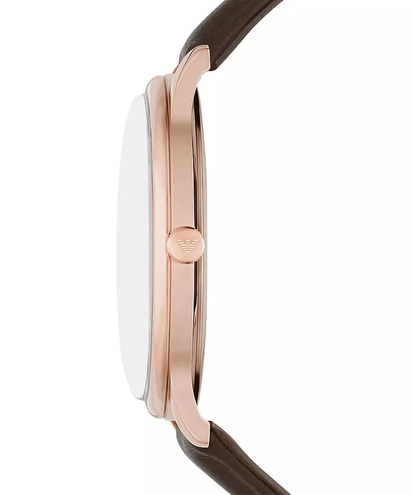 | Color | Rose Gold Stainless Steel Case / White Dial / Brown Leather Strap |